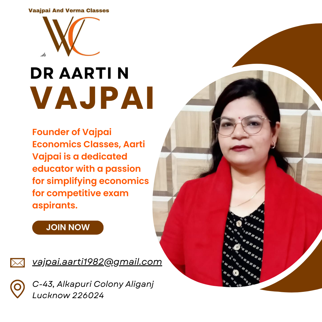 Aartie Vajpai, the visionary founder of Vajpai Economics Classes, has dedicated her career to shaping the future of students aspiring to excel in competitive exams. With a profound understanding of economics and years of teaching experience, she has revolutionized the way the subject is taught. Her unique ability to break down complex concepts into simple, relatable examples makes learning engaging and effective for students of all levels.